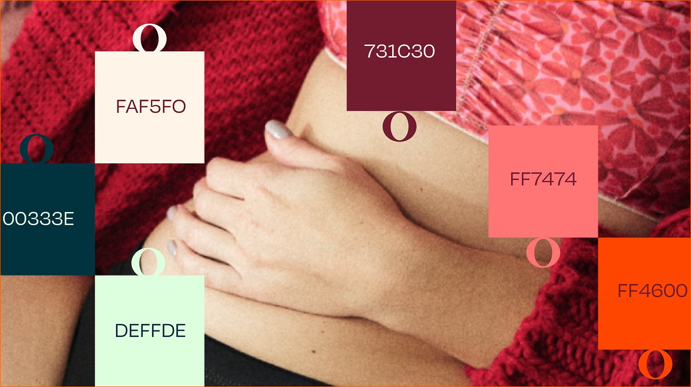 System oparty na organicznych formach i motywie litery „O”, budujący spójny, kobiecy język wizualny inspirowany naturalnym rytmem i cyklicznością.